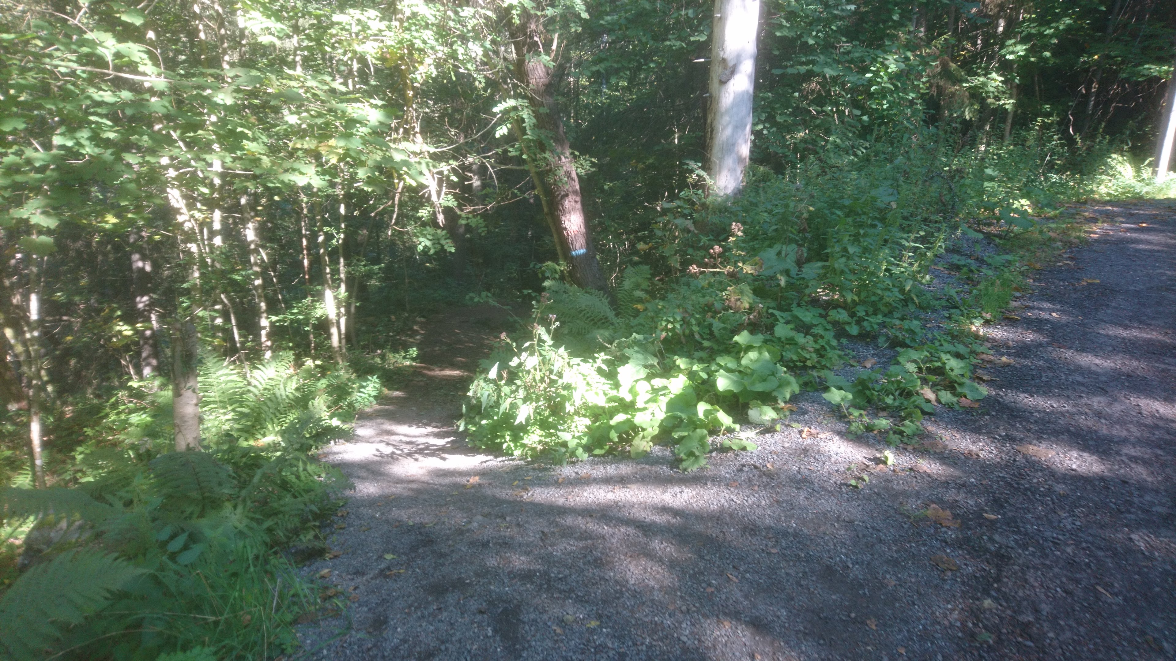 I dag tok jeg linje 1 Frognerseteren fra Jernbanetoget og gikk av på Skådalen T-banestasjon. Herfra gikk jeg til venstre oppover på Skådalsnveien forbi barnehagen til Minidammen. Herfra gikk jeg over dammens brua til venstre på umerket stien langs høyre side av Skådalsbekken og videre til høyre på stien til Vetaliveien. Gikk bratt oppover på denne veien og til venstre på blå merket stien til stikrysset videre i skogen til igjen stikrysset til forbi en privat hytta på min venstre side. Herfra er det utsikt mot Oslofjorden. Gikk videre på Skådalen oppover på bratt stien oppover igjen til en privat hytta. Her er det også god utsikt mot Oslofjorden før hytta. Fortsetter jeg videre til venstre fra hytta mot Fuglemyrhytta på denne stien. Denne stien er umerket. Så hører jeg skolebarnas lyder. Krysser jeg lille bekken, som renner ut fra Fuglemyr og videre til venstre mot Fuglemyrhytta. Her var det mange skoleelever. Her tok jeg en kort pause. Etter pausen gikk jeg bak hytta på stien. Denne stien til venstre bratt nedover videre til skiløypa veikrysset. herfra gikk jeg til venstre langs Skådalsbekken på min høyre side og Skådalen til venstre. Fortsetter jeg videre nedover til bekken går under i rør til venstre. På grunn av regn var det dette sted var løypa var ødelagt. Gikk videre til stikrysset til høyre på stien på min høyre side ned renner Skådalsbekken. Fortsetter jeg videre, men Skådalsbekken ser jeg ikke mer. Så kommer jeg tilbake til Minidammen på høyre side. Her var det også elver fra Oslo Montessoriskole. Gikk videre mot Skådalen stasjon forbi barnehagen.